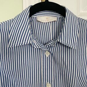 SOCAPRI Blue & White Stripe Button Down Shirt.