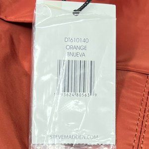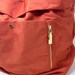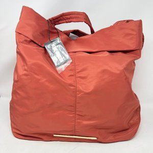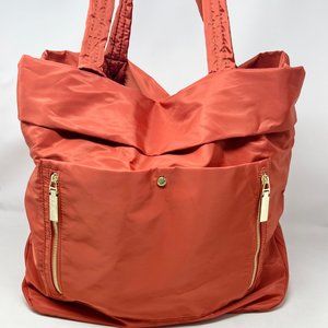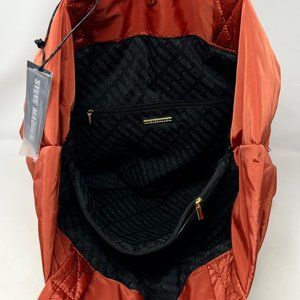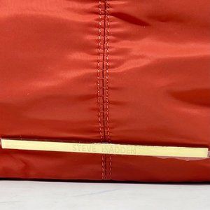 Steve Madden brand extra large Nueva shopper bag with matching wristlet. Beautiful orange color nylon fabric soft side bag. Gold tone hardware and logo plate. Quilted padded strap handles.