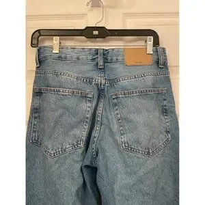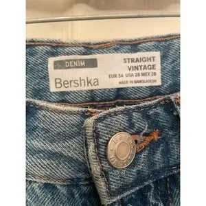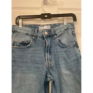 Keywords: Bershka jeans, denim, straight leg, vintage wash, light wash, casual, everyday wear, comfortable, classic, womens denim, mom jeans, boyfriend jeans
