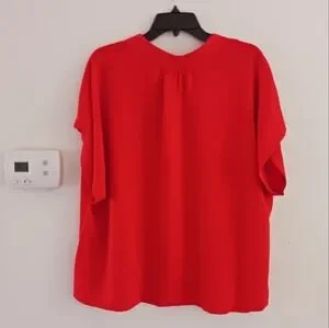 Features a flattering V-neckline with front placket, lightweight fabric offers a cool and comfortable drape, pullover style. Bust 25"