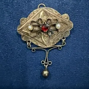 Antique- rose gold filled pearl and ruby pendant 😍