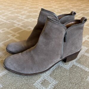 Lucky Brand Taupe Suede Ankle Booties Side Zip Low Heel Western Rustic 10.5