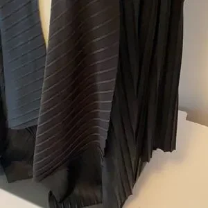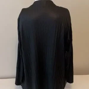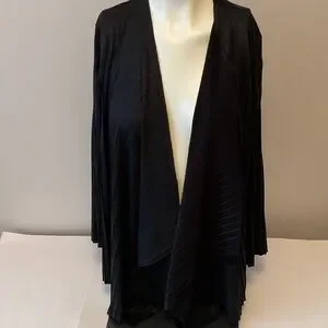 Stylish black draped cardigan with a flowing design.