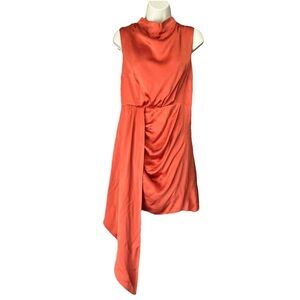 Anthropologie Women’s 6 Mock-Neck Draped Silk Sleeveless Dress In Baked Paprika.
