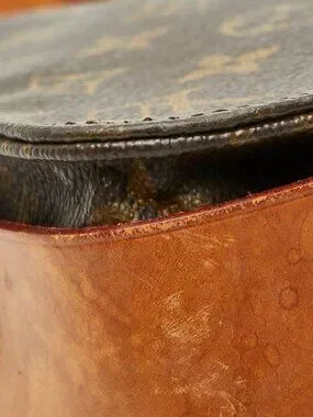 State-Condition: Overall condition details: Outside: Overall leather with discoloration. Stains. And scuffs.
