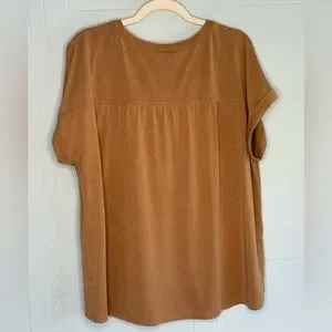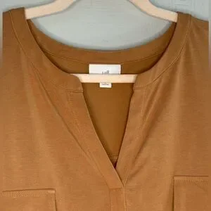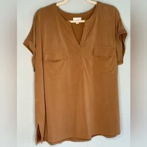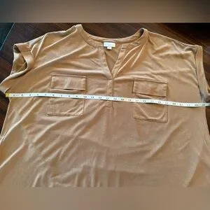 J. Jill Relaxed Fit Tan V-Neck Short Sleeve Pocket Tee Size XL Oversized