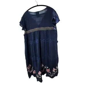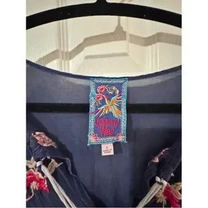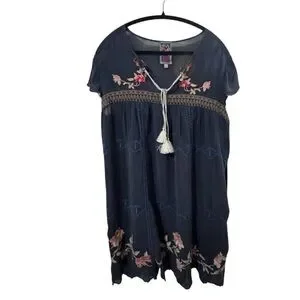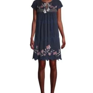 Johnny Was Blue Edda Dress with Colorful Embroidery