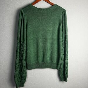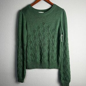 Another Love Knit Krista Pointelle Puff SL Sweater Clover Pullover Green Size M