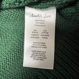 Keywords: Another Love, knit sweater, pullover sweater, green sweater, long sleeve sweater, textured sweater, womens sweater, crew neck sweater, casual sweater, medium sweater, fall sweater, winter sweater, cozy sweater, stylish sweater