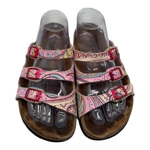 Birkenstock Papillio Florida Sandals Womens Size EU 37 US 6 Pink Paisley 3 Strap