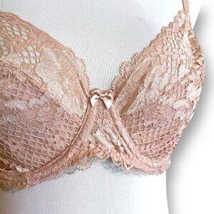 Adore Me 36D Bra Beige Nude Cinthia Unlined Full Coverage Sheer Lace Underwire