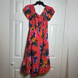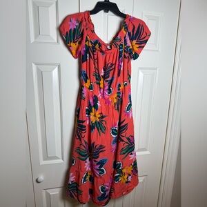 Old Navy Floral Off-Shoulder Midi Dress - Orange, Pink, Yellow