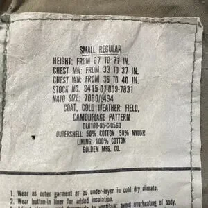 Vintage US Army Cold Weather Field Coat Small Reg Woodland Camo