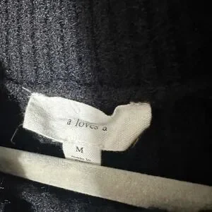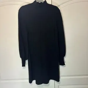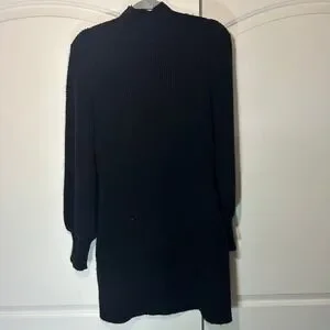 A loves A Sweater Mini Dress Balloon Sleeve Mock Neck Black Knit Womens Medium