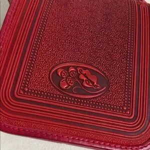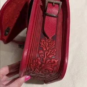Make a statement with this elegant red crossbody bag, featuring exquisite embossed details. Ideal for any occasion. Bag was purchased from an artist in Ukraine. Truly beautiful bag but I don’t wear it as much. Like new condition. Only worn once.