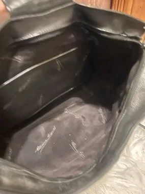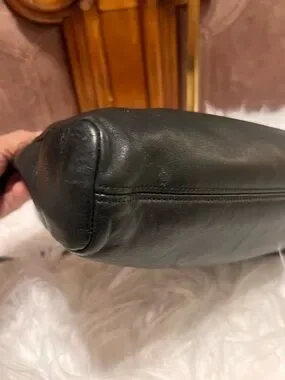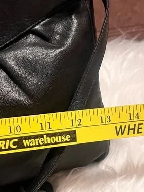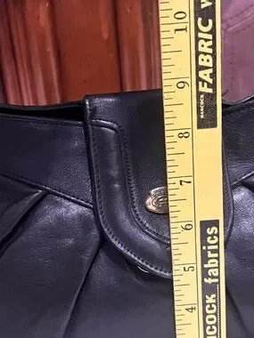 Soft black leather body with subtle pleated front detail. Secure flap with signature gold turn-lock. Slim strap for shoulder or crossbody wear. Polished gold-tone hardware adds luxe contrast.