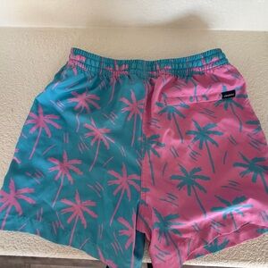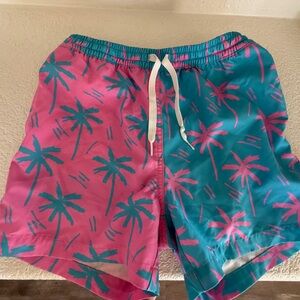 Youth Large: Chubbies Pink & Teal Palm-Print Swim Shorts *worn once *
