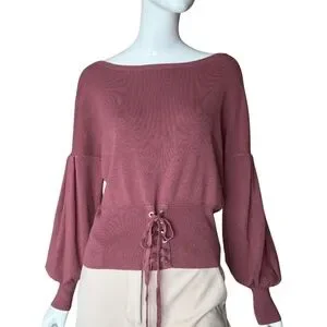 Express Dusty Rose Boat Neck Sweater With Corset Lace-up Detail Size Small NWT. New unused/unworn pristine condition. Corset lacing lends a Boho vibe to this richly hued sweater. Outstanding details include a boat neckline, oversized silver grommets and balloon sleeves with cuffs.