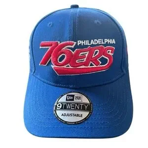 New Era adjustable baseball cap. Embroidered Philadelphia 76ers front logo. Royal blue crown and brim. Red and white logo detailing. Classic curved visor and stitched panels.