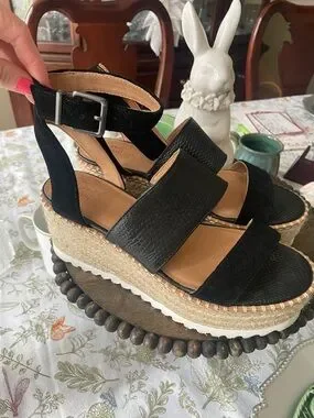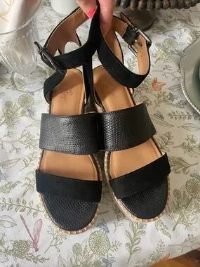 Crown Vintage Daylen Black Espadrille Platform Sandals Size 7M