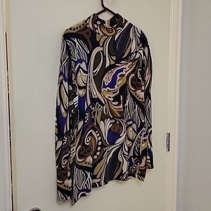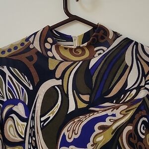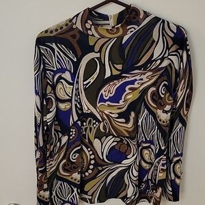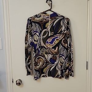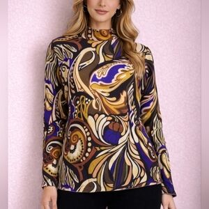 Chico's Retro Psychedelic Long Sleeve High Neck MOD Blouse