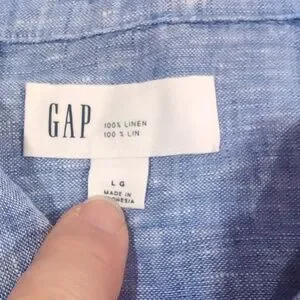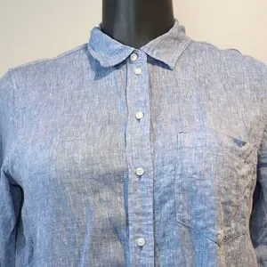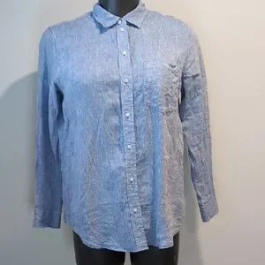 Gap 100% Linen Blue Button-Up Shirt Boyfriend Shirt