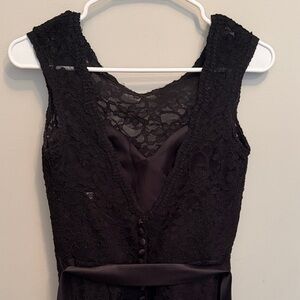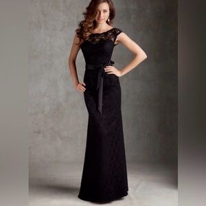 Morilee Black Lace Mermaid Hem 696 Maxi Event Dress with Satin Waist Tie. Size 8