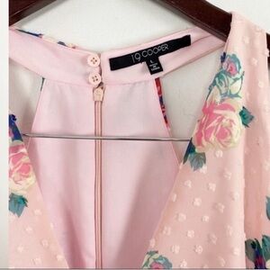 19 Cooper Pink Floral Sleeveless V-Neck Mini Dress Size Large NEW Textured Dot