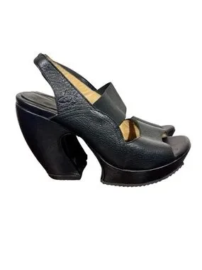 John Fluevog Spur Prepare Hi Leather Chunky Sculptural Curved Platform Sandals