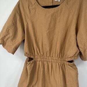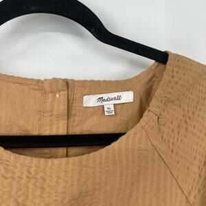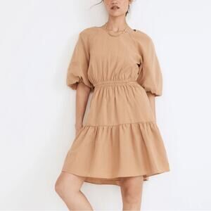 Madewell Seersucker Puff-Sleeve Cutout Mini Dress in Seed Khaki