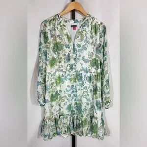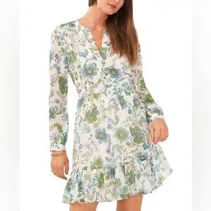 Vince Camuto Women's Printed Split-Neck Long-Sleeve Dress Size Small