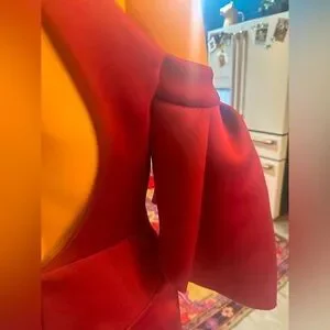I bought this but have gained weight and no longer a 4. So edgy and unique. The material is like a thick work out or thin wet suit material. So cool. Stretchy and comes with an extra button. Gorgeous. Stand out at any event. Graduation party, wedding, anything.