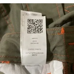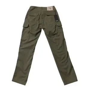 Cargo pants in Kalamata olive green feature striking Papaya Orange contrast stitching throughout for a bold, utilitarian look. Crafted from a durable cotton blend, these straight-leg trousers are equipped with classic six-pocket styling, including signature button-flap cargo pockets and rear pockets detailed with the iconic horseshoe embroidery. A zip fly with a branded button closure and a woven logo patch at the back waist complete this rugged, street-ready design.