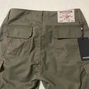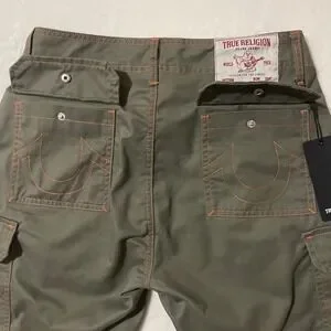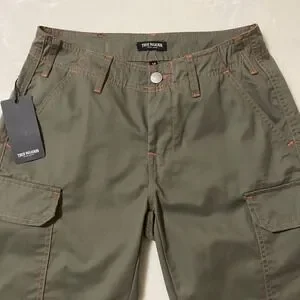 True Religion Mens Cargo Pants Kalamata Papaya Orange Contrast Stitch Size 28