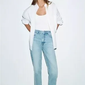 Straight-leg jeans in a soft light blue wash. High-rise silhouette with a relaxed fit through the leg. Clean, minimal detailing for versatile styling. Easy to pair with casual or elevated tops.