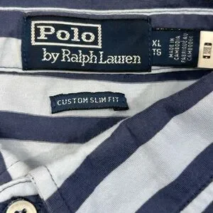 Polo Ralph Lauren Men's Custom Slim Fit Navy Striped Shirt XL Red Pony