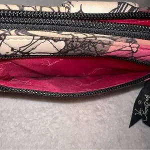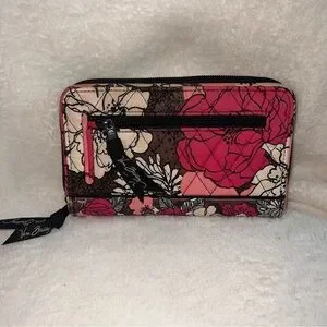 Stylish Vera Bradley wallet with floral design. Features pink, brown, and white colors. Perfect for everyday use. Preowned