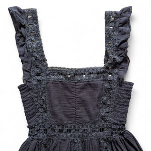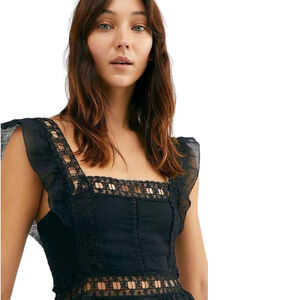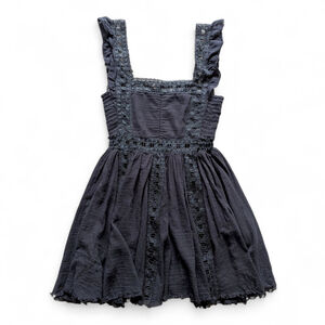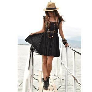 Free People Verona Black Mini Raw Hem Dress S Boho Lace Cottagecore Favorite