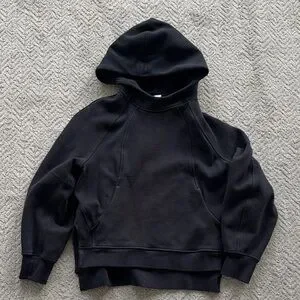 Classic black lululemon hooded sweatshirt with an oversized fit. Soft, durable fabric for everyday wear. Extra details of side slits and thumb holes. Only worn a couple of times! Size is XS/S