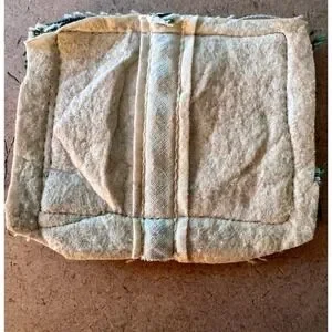 This is a vintage embroidered Tide patch measuring approximately 3 by 2.5 inches. It features the classic Tide brand name in green lettering over a red circular graphic, all set on a cream-colored woven background. The patch shows clear signs of age and previous use, including frayed edges along the outer green border and some discoloration on the reverse side as seen in the photos. This is an authentic piece of advertising memorabilia, perfect for collectors of vintage laundry brands or for repurposing onto a jacket or bag. Please review all images for a detailed look at the condition.