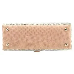 Judith Leiber Karung Skin and Swarovski Crystal Two-tier Evening bag Minaudiere are approximately 6 inches wide by 5 inches high by 2.5 inches deep at the base.