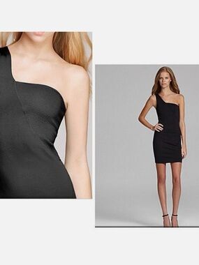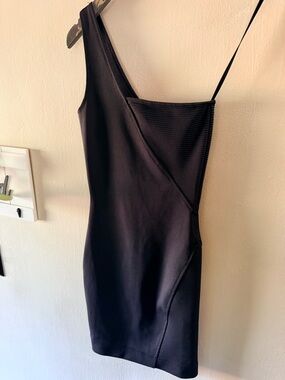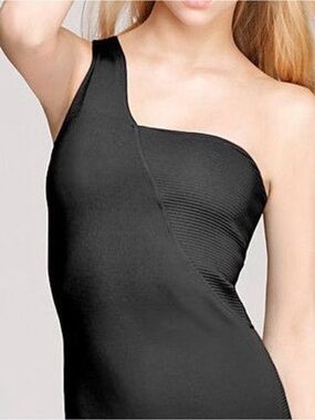 One-shoulder silhouette with a sleek fitted shape. Subtle ribbed paneling adds texture and visual interest. Smooth fabric for a polished finish. Ideal for evening or dress-up occasions.
