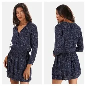 $188 Rails Jasmine Star Mini Dress In Navy Nova Size Medium Smocked Long Sleeve Stretch