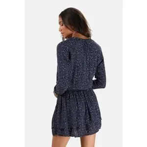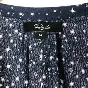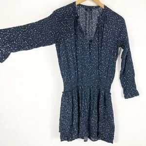Rails Jasmine Star Print Mini Dress Navy Nova Size Medium Smocked Long Sleeve