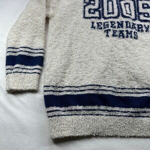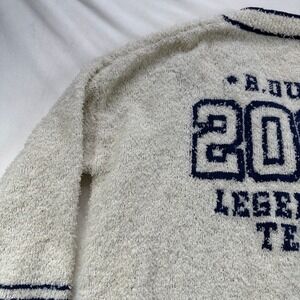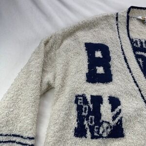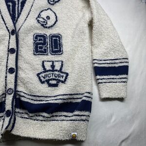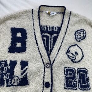 B Duck Teens Fuzzy Cardigan Sweater Cream Blue Varsity Y2K Graphic Size Medium