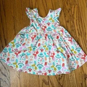 2T Hanna Andersson rainbow mermaid print ruffle sleeve dress with pockets