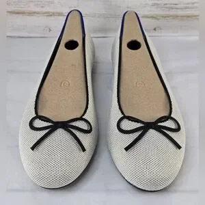 Rothy's The Ballet Flat Bow Accent Round Toe Diamond Metallic Women's Size 8.5