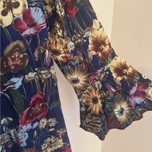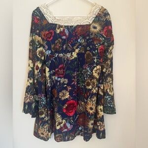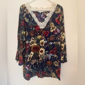 Umgee Floral Boho Whimsigoth Tunic Top Lace V-Neck Bell Sleeve Women’s Medium