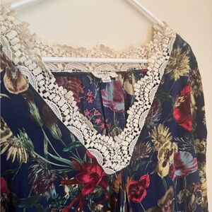 umgee top, umgee blouse, boho tunic, floral tunic top, lace v neck blouse, bohemian top, women’s medium top, navy floral blouse, long sleeve tunic, boutique style top, whimsigoth