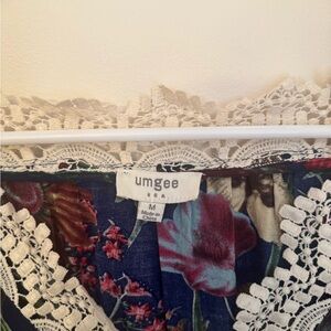 Umgee women’s floral boho tunic top in a size medium. Features a flattering V-neckline with crochet lace trim and flowy bell sleeves. In excellent condition- no stains, holes, or flaws. Fast shipping!